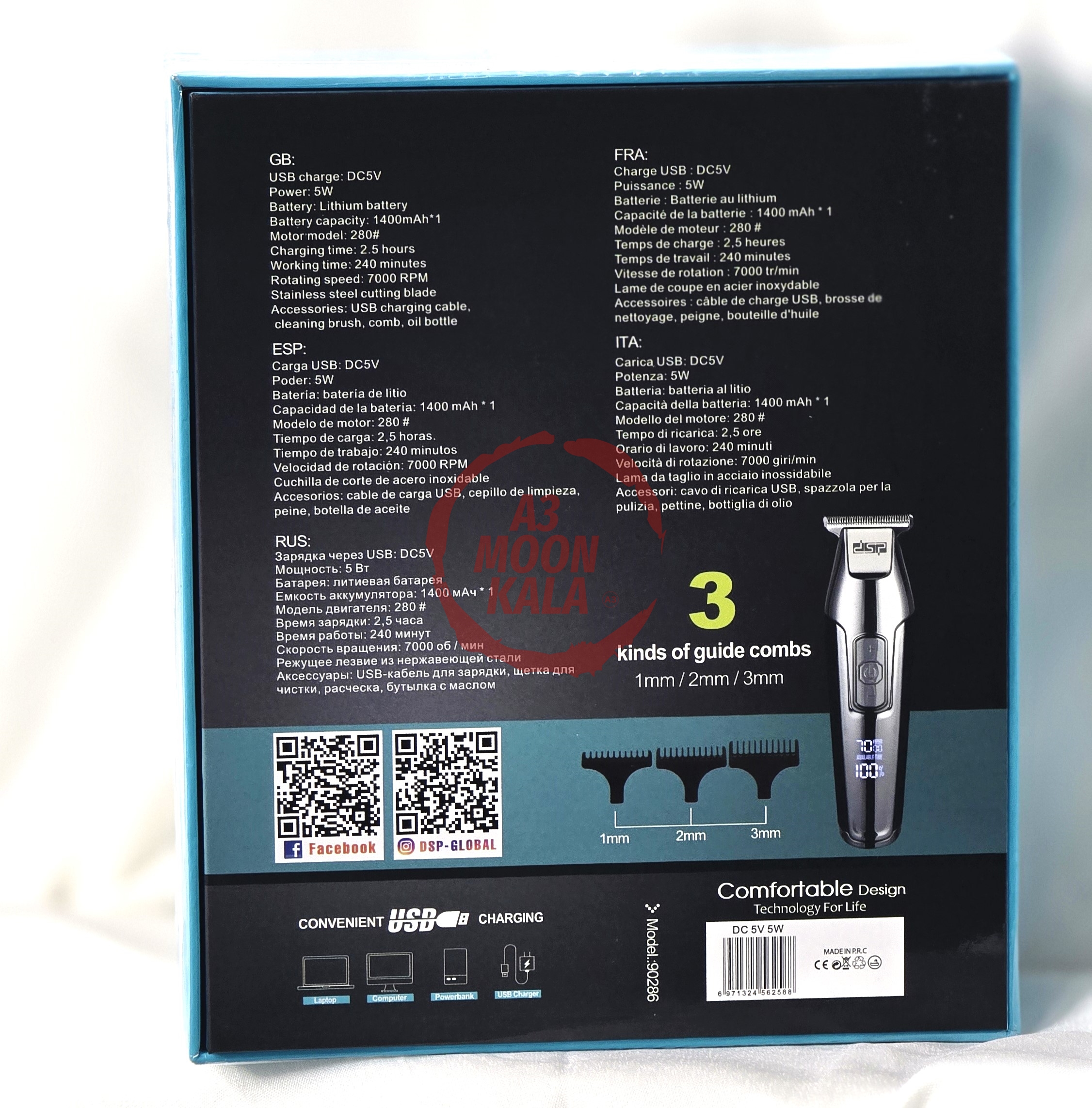 ماشین اصلاح موی سر و صورت دی اس پی 7000 مدل DSP 90286، انتخابی بینظیر برای اصلاحی حرفهای و دقیق! با تیغههای استیل و قابل تنظیم، تجربهای نرم و راحت را به شما هدیه میدهد. سبک، کمصدا و با باتری قوی که برای استفاده طولانیمدت ایدهآل است. بهترین همراه شما برای همیشه آراستهبودن!